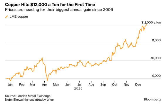 Copper’s breakout to record highs is increasingly reflecting a structural repricing rather than a cyclical spike, with the metal now showing clear potential to move further higher as its role in the global economy expands. Demand is no longer limited to traditional construction and manufacturing; it is being structurally lifted by electrification, EV penetration, renewable energy grids, data centers, AI-driven power infrastructure, and large-scale transmission upgrades—all of which are copper-intensive and non-substitutable. At the same time, supply remains inelastic due to declining ore grades, underinvestment in new mines, long permitting cycles, and geopolitical concentration of production, creating a persistent demand–supply imbalance. This dynamic mirrors what has already played out in silver during 2025, where the metal outperformed most asset classes as industrial demand converged with investment flows, forcing a valuation reset. Copper now appears to be entering a similar phase, where higher usage intensity and strategic importance are driving sustained price strength rather than speculative excess. In the current macro environment, copper is evolving into a critical growth and scarcity asset, suggesting that elevated prices may not signal a peak but rather a new equilibrium shaped by long-term structural demand.